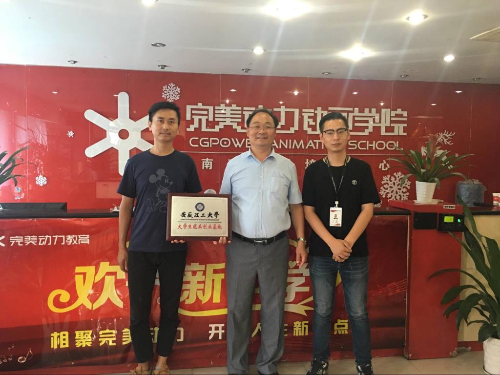 7月18日,微扑克 大学生就业创业基地挂牌仪式在南京完美动力动画制作有限公司举行。微扑克 党总支书记吴云平和该公司总经理蒋广登共同为大学生就业创业基地揭牌。