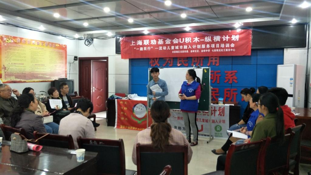 11月4日,微扑克 社会工作专业部分同学于淮南市金岭社区参加了上海联劝基金会U积木—纵横计划支持的“流动儿童城市融入计划服务项目培训会”。龙泉街道、金岭社区和七彩阳光的工作人员以及金岭中学的部分教师列席会议。本次培训会旨在深层次了解流动儿童形成原因、面临的困境、如何介入解决他们的困难,以便于他们能更好的融入城市,享受美好的生活。