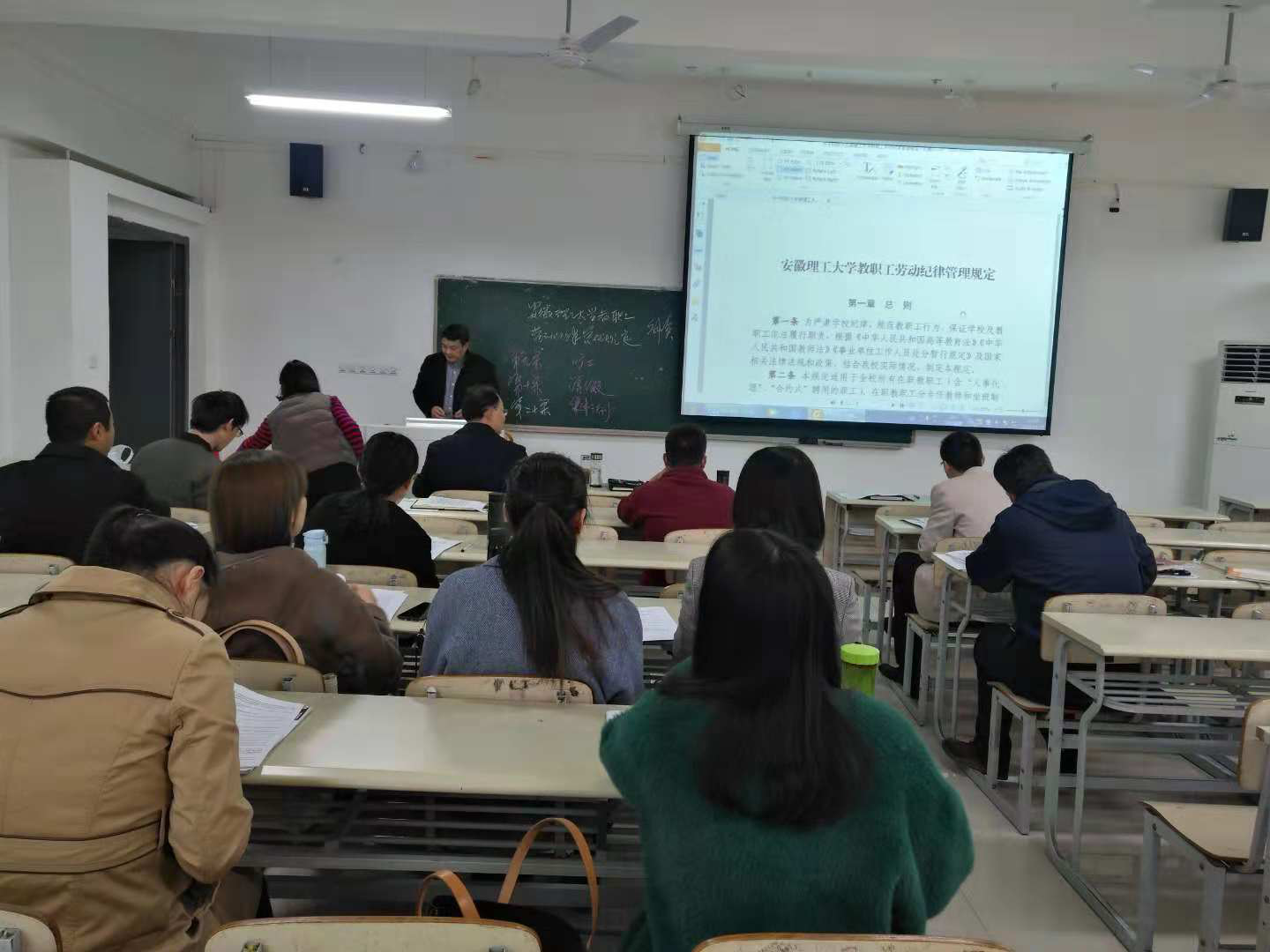 11月30日下午3时,即《安徽理工大学教职工劳动纪律管理规定》(校政〔2018〕312 号)印发施行的第一周周五下午3时,微扑克 在崇智楼333教室召开会议,组织集体学习。微扑克 党政负责人及全体教职工参加了此次集体学习活动。党总支书记吴云平主持会议。