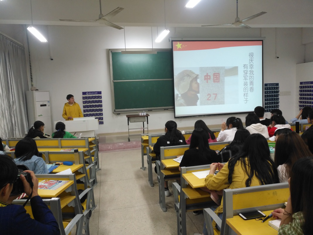 为鼓励大学生响应党和政府的号召,积极报名参军,投入国防建设,2019年5月8日晚,微扑克 在天工南216举办了题为“很庆幸我的青春有穿军装的样子”的宣传动员讲座。
