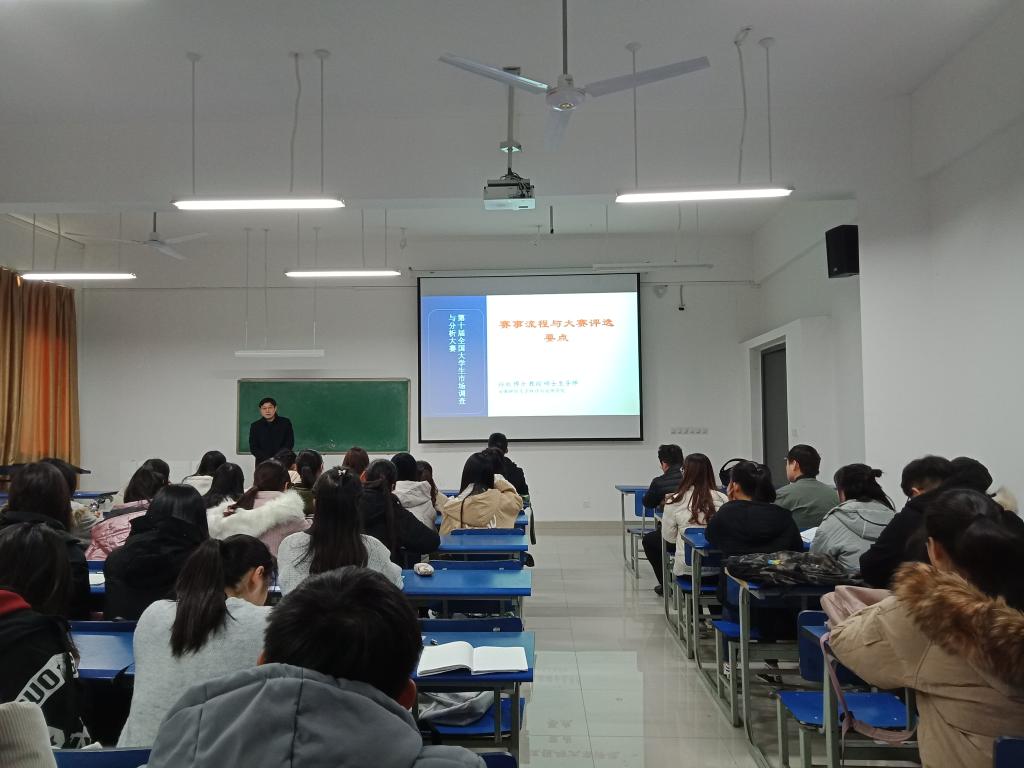 孙欣教授从赛事安排及规则说明、组队与导师选择、调查研究环节把握、书面报告评审标准、答辩环节等五个部分对大赛的流程与评选工作进行了讲解。整个讲解过程生动、形象,同学们都听得非常认真,收获颇多。