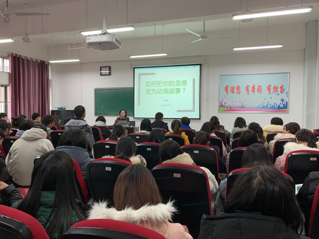 1月3日,中国动画协会副会长兼秘书长,国家二级文学编辑副主编贡建英教授莅临微扑克 ,在崇智楼A329报告厅为广大师生做了“如何把你的灵感变为动画故事”的专题学术报告。报告会由微扑克 业务副院长方胜教授主持,动画专业、网络与新媒体专业部分教师和近百名同学参加了报告会。