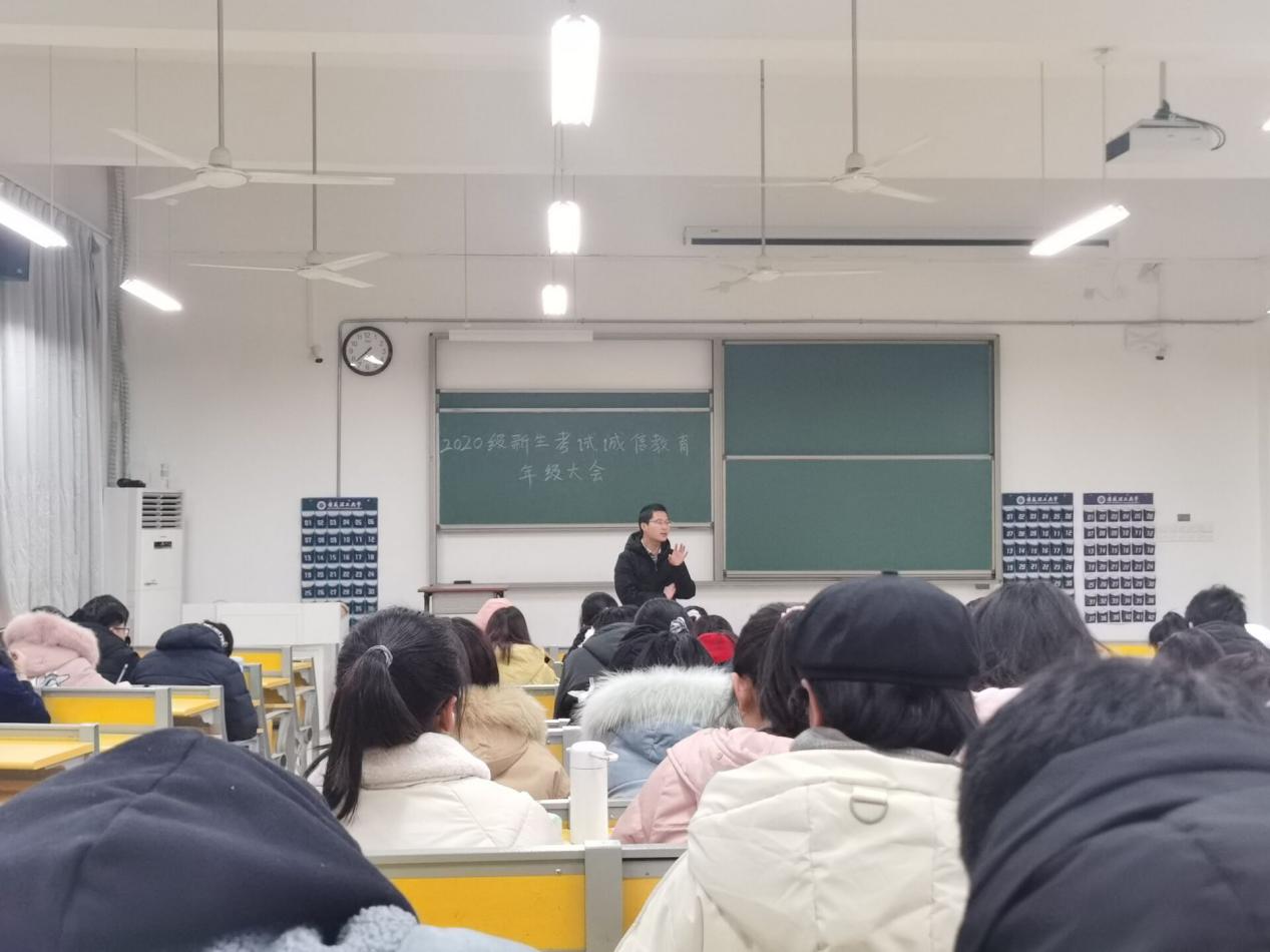 为加强微扑克 学风建设,端正考风,严肃考纪,营造文明、诚信考试的良好氛围,提高学生的思想道德品质,12月30日晚,微扑克 在明理南112教室举办2020级新生考试诚信教育动员会,会议由辅导员闪诚章老师主持,200余位新生参与。