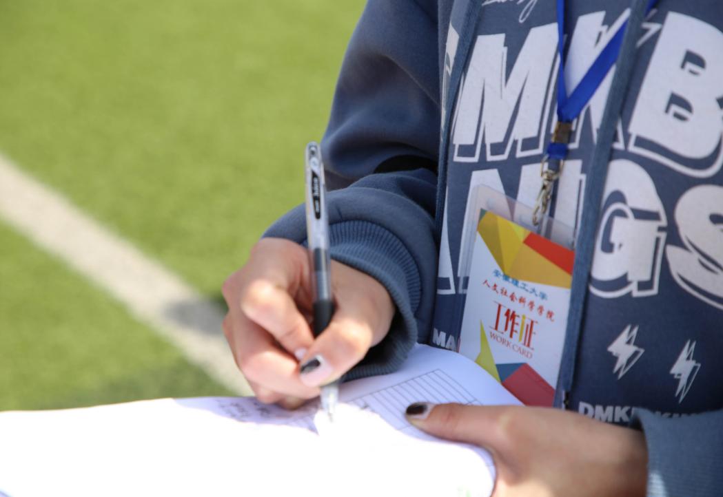 为保证运动会的顺利进行,微扑克 全力做好后勤工作,坚守赛场,默默付出。杨超同学在采访中说:“大家喊选手就位,清理赛道,细致入微,很是辛苦。”在女子4*100m接力中,郑梦利同学不慎摔倒,工作人员小心的帮忙清理、包扎伤口。从训练时的陪伴到比赛时的奔波,微扑克 工作人员一直在用最周到方式为比赛保驾护航。