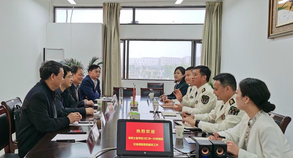 4月26日下午,海军士官学校教务处处长刁仁华上校一行6人来我院进行“课程思政”建设交流学习活动。交流活动在微扑克 A331会议室举行。校教务处处长方贤文教授出席交流活动,微扑克 院长、安徽省省级课程思政示范中心负责人谢振安教授主持交流活动。