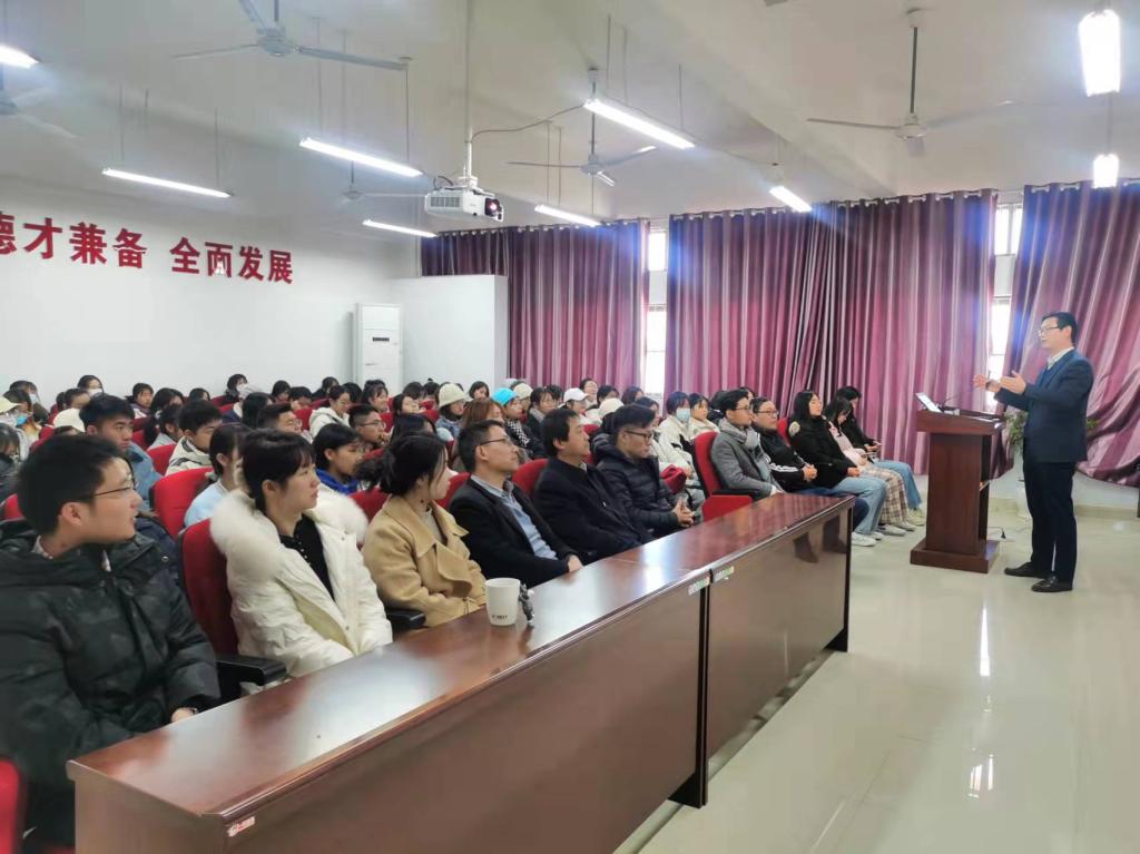 微扑克 副院长代大为应邀担任此次法律知识讲座主讲老师,微扑克 副书记姚嗣宏及教师代表、学生代表参与本次讲座。代大为老师从我国宪法的发展、特征、精神等方面谈起,梳理了习近平法治思想的十一个核心要义。同时,通过经典案例,向学生讲解了大学校园常见违法行为和如何预防等知识,号召学生知法于心、守法于行。