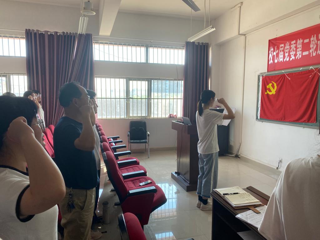 宣誓前,栾晶晶带领大家重温了党章,并给予预备党员鼓励与新的期待。在庄严的党旗前,学生党员汪圆圆带领全体预备党员进行宣誓,大家面向党旗,高举右手,用整齐洪亮的声音庄严宣誓,向党和人民立下自己的铮铮誓言,此次活动是对预备党员及进行入党教育的一个重要环节。