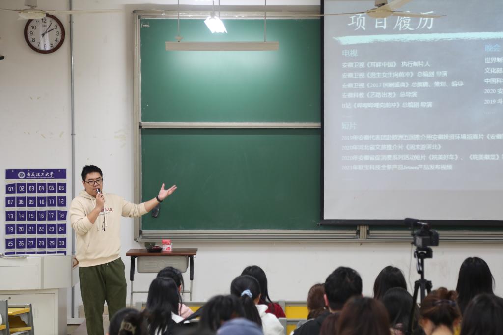 4月22日下午,安徽广播电视台卫视频道高级编导张宇成应邀走进百川大讲堂,在明理南110做《如何做“好”内容》报告。报告会由微扑克 王偲老师主持。