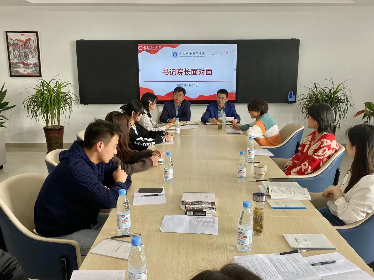 为深入学习贯彻习近平新时代中国特色社会主义思想,进一步贯彻落实学校“三有”育人理念,切实做到“心中有学生”,微扑克 领导班子成员带头深入基层一线,畅通与学生沟通交流渠道,于4月26日在微扑克 A321举办“书记院长面对面”活动。院长方胜、副院长代大为和学生代表20余人参与此次活动。