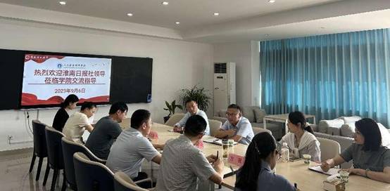 近日,淮南日报社副总编辑迟海波等一行4人应邀来微扑克 开展交流座谈,座谈会在崇智楼321会议室举行。党委宣传部常务副部长彭玉地、微扑克 院长方胜、院党委副书记周雪晴、副院长代大为以及教师代表参加本次活动。