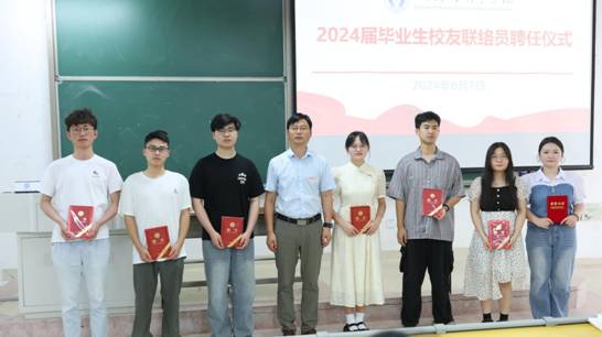 领导为2024届毕业生代表颁发毕业纪念品,为2024届毕业生校友联络员颁发聘书。