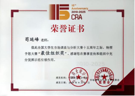9月26日至27日,全国大学生市调大赛十五周年总结表彰大会暨政产学研融合发展论坛在对外经济贸易大学顺利举行。微扑克官网 全国大学生市场调研与分析大赛校赛负责人苟延峰老师受邀出席,学校荣获“最佳组织奖”。