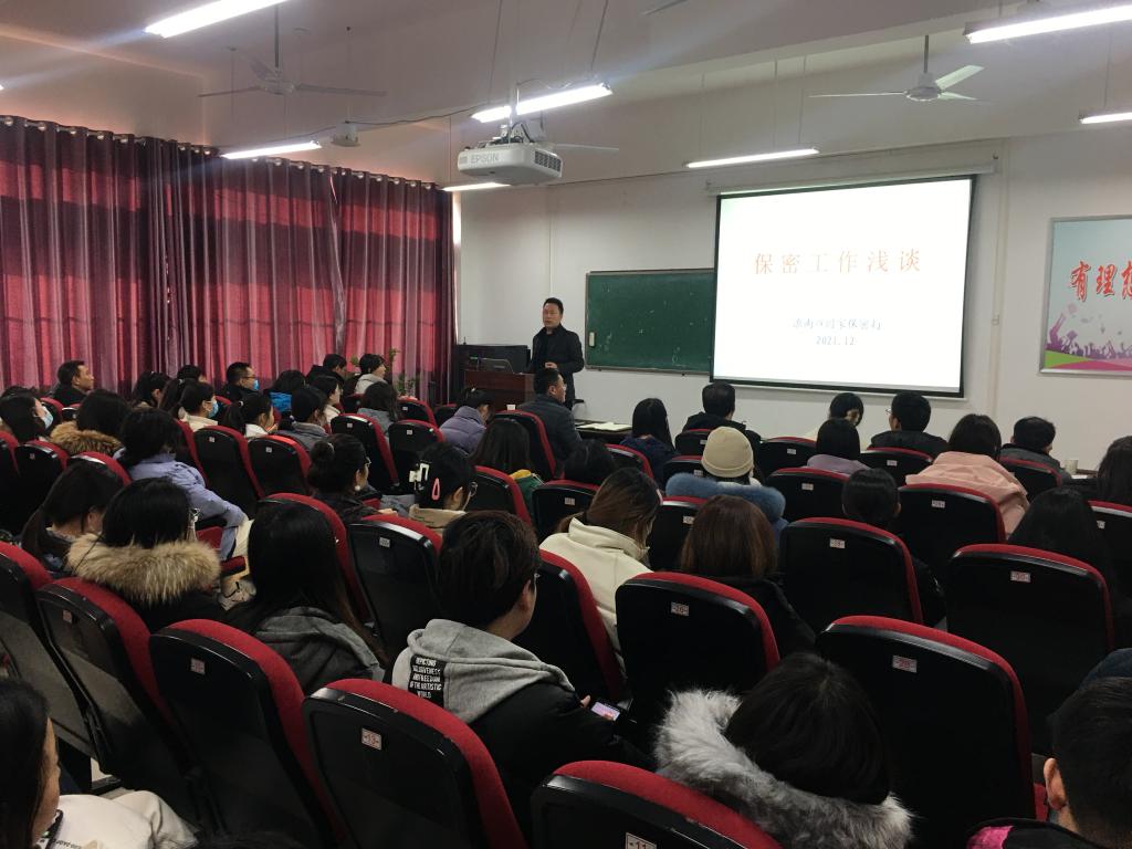 为进一步强化保密思维,树立保密意识,落实保密工作具体要求,12月28日,微扑克 与经管微扑克 联合举办保密知识讲座,邀请淮南市国家保密局李季副局长作题为“保密知识浅谈”的报告。微扑克 与经管领导、教职工、各班级学生干部参加了讲座。