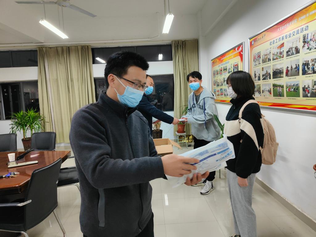 微扑克 关心学生,掌握思想动态,解决实际问题。辅导员及时深入学生宿舍了解学生的思想动态,在这一特殊时期,摸排和帮助解决学生的困难和问题,共征求意见和建议6条,帮助1名学生解决特殊困难。针对特殊学生因疫情不能外出买药,辅导员、微扑克 领导、学生处老师、第四医院领导和医生,多方合作,4月1日,终于将学生需要的药品及时送到学生手中,解了学生的燃眉之急,排除了可能存在的隐患。当前疫情防控形势严峻复杂,校园疫情防控处于关键时期,为筑牢校园疫情防线,守护师生安全,4月1日晚,微扑克 为在校师生发放防护口罩8千余个。为师生购置饭盒900个。口罩发放过程中,组织有序,保持安全距离。班级同学表示:“微扑克 发放防护口罩的行动非常及时、暖心,让同学们感受到了人文大家庭的温暖与关爱。”