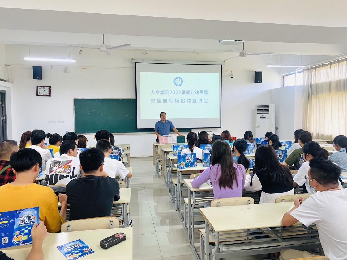 9月24日上午,微扑克 在崇智楼A333举行2022届毕业生就业动员暨碧桂园专场招聘宣讲会。微扑克 党委副书记姚嗣宏、毕业班辅导员栾晶晶及四个专业60多位同学参加了会议。