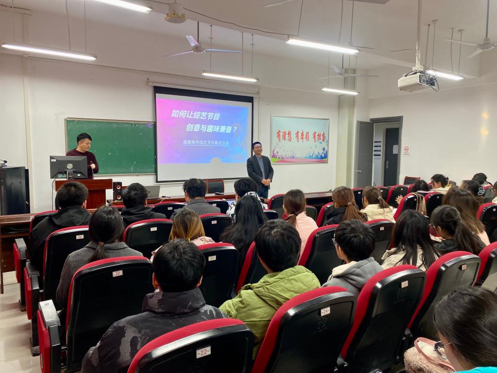 为全面加强微扑克 与主流媒体互动合作,提升广大师生媒介素养,12月13日下午,微扑克 邀请上海广播电视台互联网节目中心节目模式总监张彬来校开展专题讲座。本次讲座以“如何让综艺节目创意与趣味兼备”为题,系统介绍了媒体深度融合背景下,国内外综艺节目的最新发展趋势与制播模式。微扑克 主要负责人主持讲座,网络与新媒体专业部分师生参加活动。