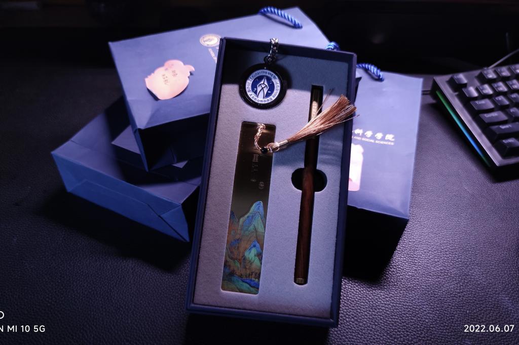 微扑克 为2022届毕业生定制专属纪念礼品套盒,一个刻有本人姓名和微扑克 标识的钥匙扣,一个刻有“崇文尚美 经世重法”微扑克 院训的书签,和一根象征着前程似锦的定制笔。将片片真情送给学生,希望全体毕业生怀揣母校恩情,在新的征程上披荆斩棘!