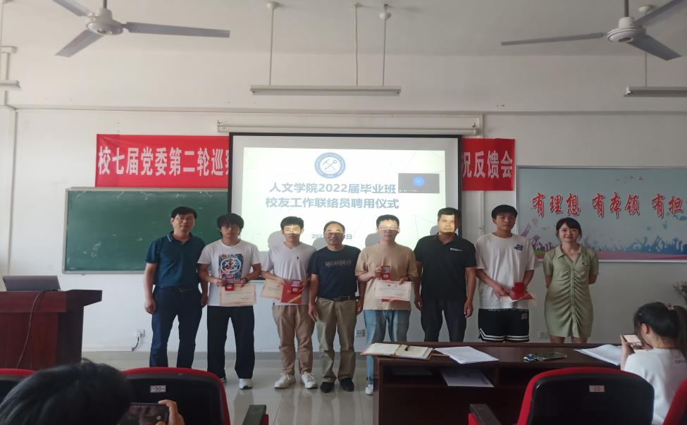 微扑克 举行2022届毕业班校友工作联络员聘用仪式,院党委副书记姚嗣宏、副院长代大为、吕延等领导班子及毕业班辅导员出席聘用仪式,为四名毕业班校友工作联络员颁发聘书和专属印章,希望他们在今后能够密切联络班级同学,加强微扑克 与校友之间的沟通与联系。