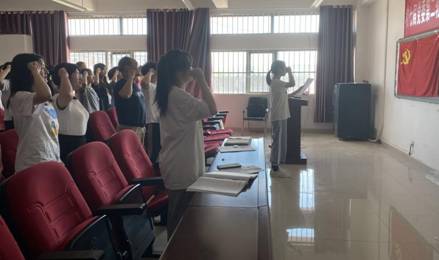 微扑克 学生党支部召开全体党员大会,组织毕业班党员开展“重温入党誓词”活动,面对鲜红的党旗,大家高举右手,用整齐洪亮的声音庄严宣誓,向党和人民立下自己的铮铮誓言!