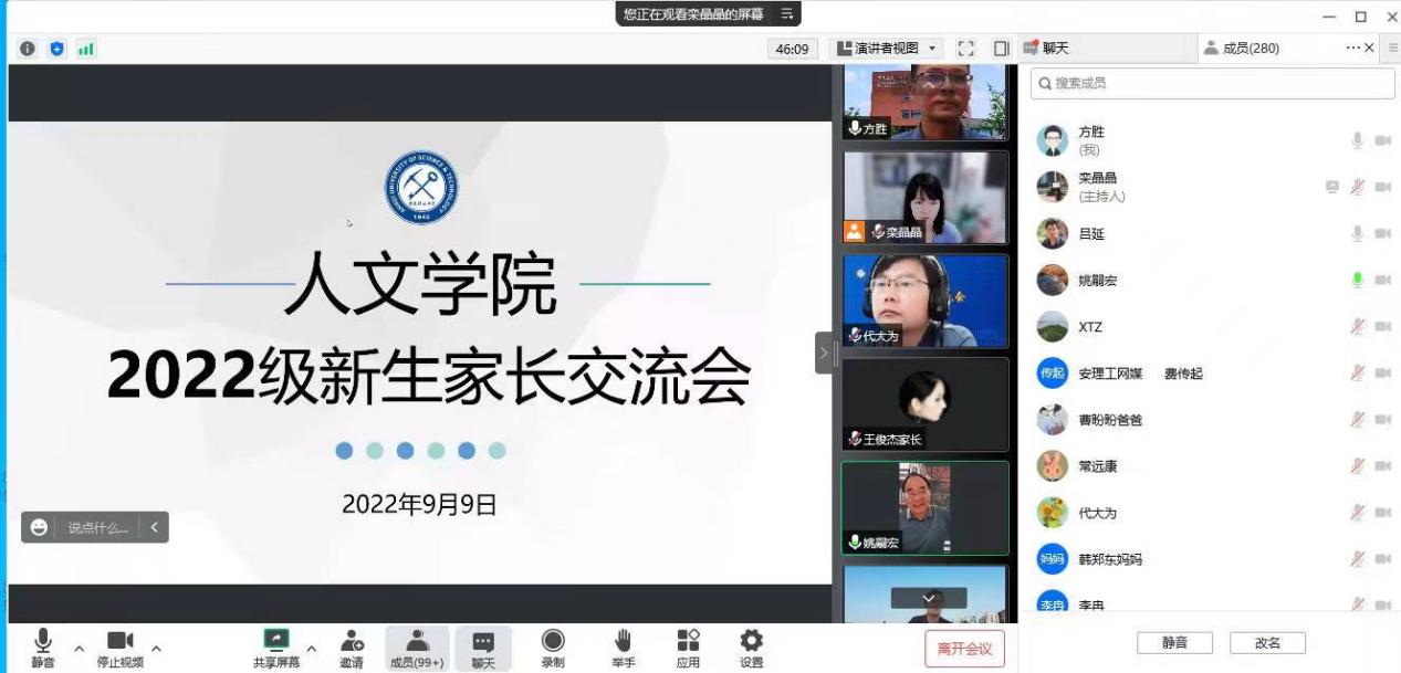 为加强微扑克 与新生家长之间的沟通,使新生尽快适应大学生活,做好开学前的准备工作,微扑克 于9月9日晚召开2022级新生家长线上见面交流会。微扑克 全体领导班子成员、团委书记、新生辅导员及新生家长近300人参加了交流会。会议由党委副书记姚嗣宏主持。