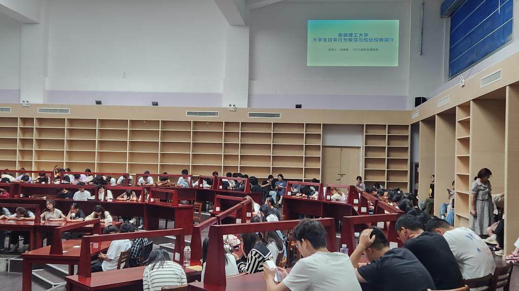 9月15日上午,微扑克 2023级新生辅导员闪诚章结合学生手册的相关内容,为全体新生详细讲解了学校的日常规范、教务学籍、奖贷资助、素质拓展等方面的信息。他要求全体新生熟读学生手册,遵守大学生日常行为规范,不违反校纪校规。同时,他鼓励新生大学生活的自由性和包容度相对较高,大家要适应大学生活,促进全方位发展。