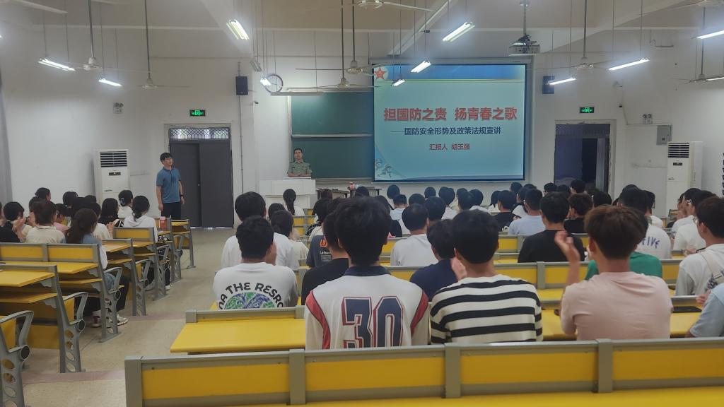9月15日下午,微扑克 邀请寿县县委常委、武装部政委胡玉强为全体新生开展国防教育。胡玉强简单的介绍了当前世界面临的形势,在新时代大学生必须要有所为、有所不为。接下来,他详细讲解了大学生征兵入伍政策、优抚待遇,鼓励在校大学生勇敢携笔从戎,保家卫国,把小我融入大我,展现新时代大学生的担当与作为。