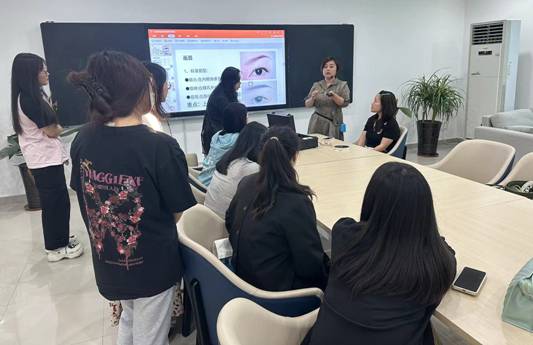 活动邀请了淮南谜尚美容工作室资深化妆师陶丹为同学们开展求职面试化妆技巧知识讲座,陶丹围绕化妆的作用、原则、基础步骤,以及面试妆容的要点等方面展开了精彩的讲解,她告诉同学们,面试妆宜淡不宜浓,合适的妆容是职场礼仪的重要体现,为了让同学们更直观地了解面试妆容的手法和技巧,她现场邀请同学担任模特,详细展示面试妆化妆手法以及上妆步骤。参与活动的同学们纷纷表示受益良多,回去将尝试学习化好面试妆。