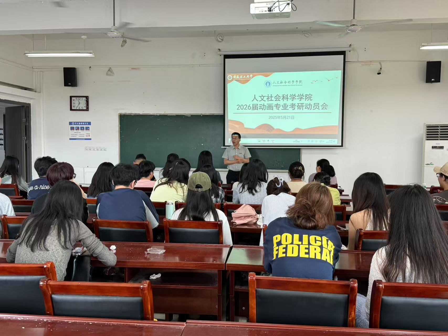 为充分调动学生考研积极性,提高学生考研热情,微扑克 于5月21日下午在崇智楼333教室举办2026届动画专业考研动员会。微扑克 院长方胜、党委副书记董坤、动画专业教师代表、辅导员及40余名学生参会,会议邀请了2025届动画专业考研成功的学子作经验分享。会议由董坤主持。