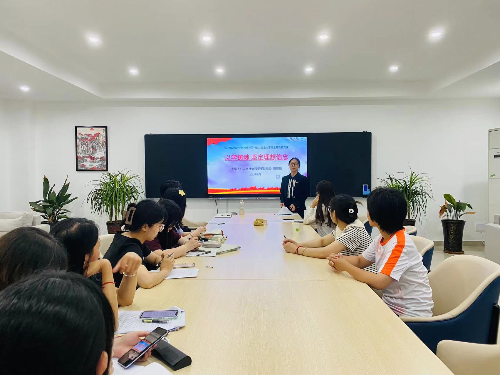 5月29日晚,微扑克 党委副书记周雪晴在崇智楼A321为学生第一党支部讲授学习贯彻习近平新时代中国特色社会主义思想主题教育专题党课。支部全体党员同志参加。