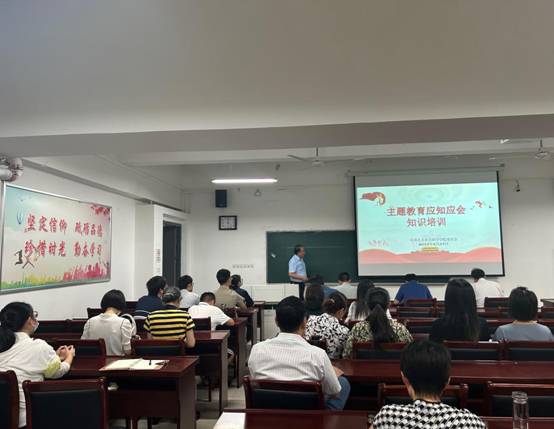 为进一步推动学习贯彻习近平新时代中国特色社会主义思想主题教育走深走实,6月29日下午,微扑克 在崇智楼A333教室举办主题教育知识培训。培训由微扑克 党委书记王大贤主讲,全体教职工党员参与。